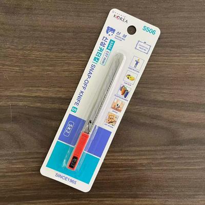 Dirancang dengan gagang baja dan mekanisme penguncian untuk keamanan, Pisau Utilitas SINSEUNG (Model: S506) dilengkapi dengan satu bilah 86mm yang disertakan, memastikan kinerja yang tahan lama. Detail pengemasan termasuk 10 buah per kotak bagian dalam, dengan 20 kotak bagian dalam per karton (200 buah per karton).